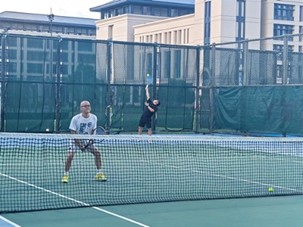 当晚,“北大-澳大师生网球友谊赛”在澳门大学网球场活力上演,成为本次访问活动中生动活泼的交流篇章。两校师生共同参与网球联谊赛,挥拍竞技,以体育交流促进文化融合,生动诠释了“文明互鉴、友谊长青”的交流理念。参赛师生表示,体育交流让双方在学术之外建立了更直观的联系,跨文化沟通的实践为后续合作奠定了良好基础。