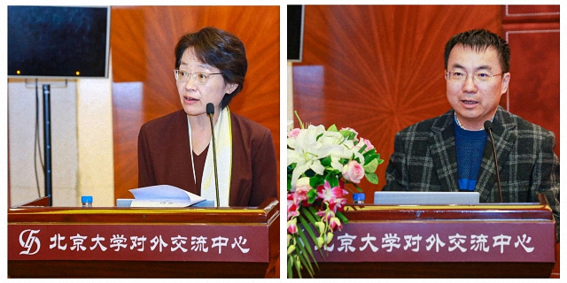 (图片人物:第一时段主持人北京大学非洲研究中心主任刘海方;第二时段主持人北京大学国际关系学院教授丁斗)