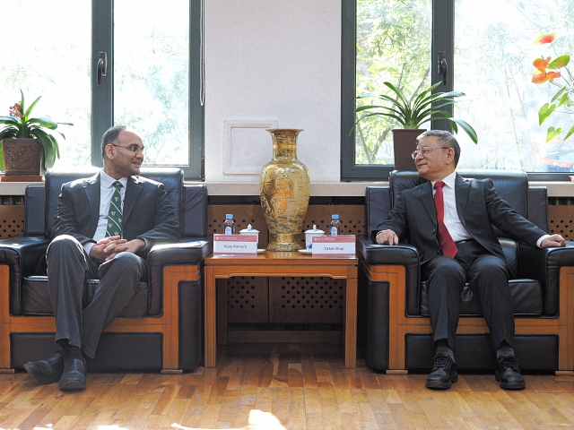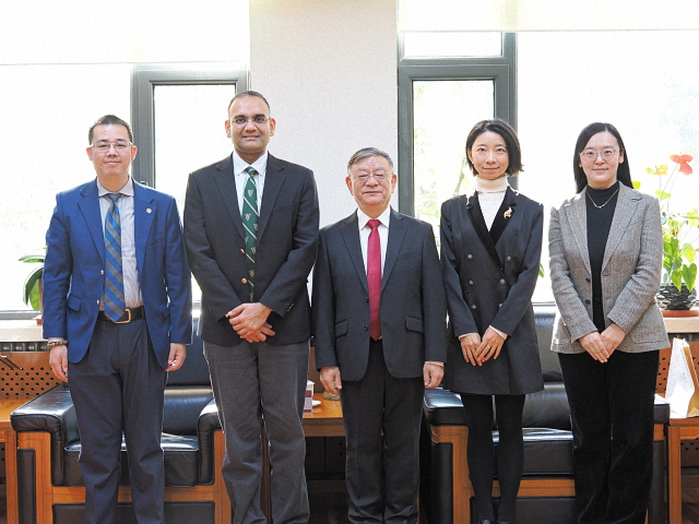 2025年11月18日,学院院长唐士其、副院长董昭华和庞珣教授一同会见了到访的美国圣路易斯华盛顿大学副教务长维杰·拉马尼(Vijay Ramani)及该校中国办公室主任徐进(Bill Xu)。
