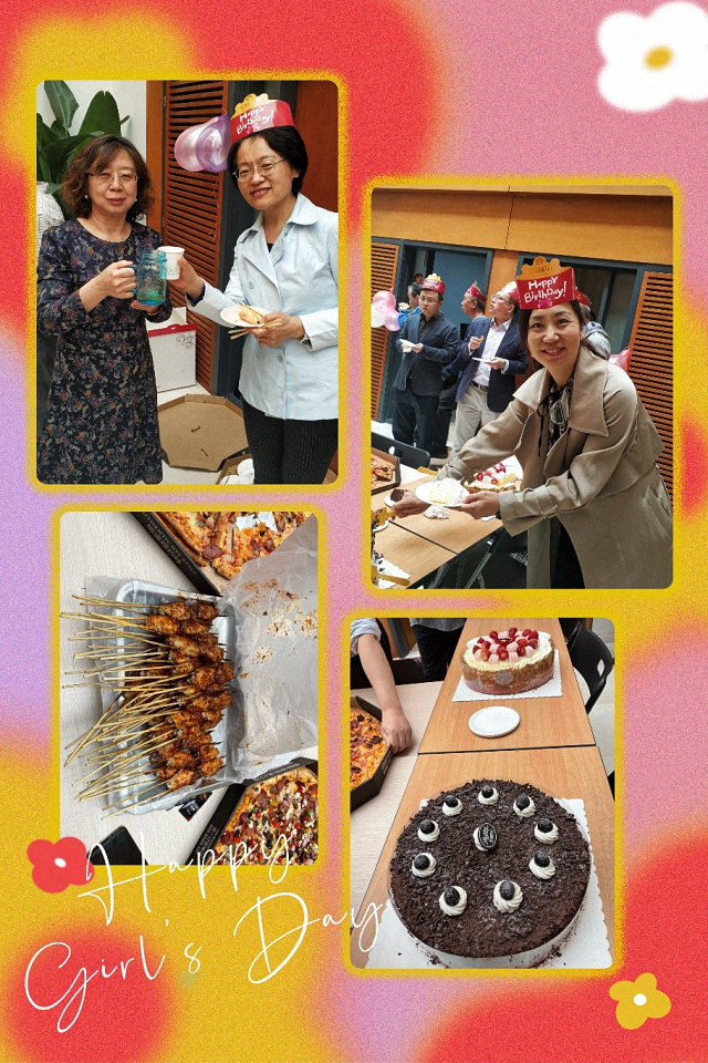 “生日汇”延续历来惯例,工会主席闫岩、副主席霍艳丽和工会委员汪洋老师携手,为4月份过生日的老师们提前预定了生日蛋糕,准备了丰富的茶点和饮品,为每位老师制作了带有姓名和学院logo的祝福彩带,汪老师为大家准备了好吃的羊肉串和烤鸡翅,刘伟老师为生日汇布置了水果、气球和鲜花摆设。会场内外,处处洋 溢着温暖和谐的生日气氛。