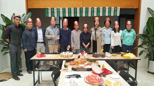 2021年4月27日中午,学院工会为4月份过生日的老师们,联合带来了一场别开生面的温暖“生日汇”。正值春暖花开、春光明媚的季节,生日会原定于国关后花园举办,但是前一天天气预报说生日会当天会有沙尘暴,于是,生日会改在在学院A座大厅举行。虽然风沙有些“跑偏”,并没有光临北京上空,但是大风依然猛烈,这些也没有阻碍大家庆生的热情,共有约40位老师到场祝贺。