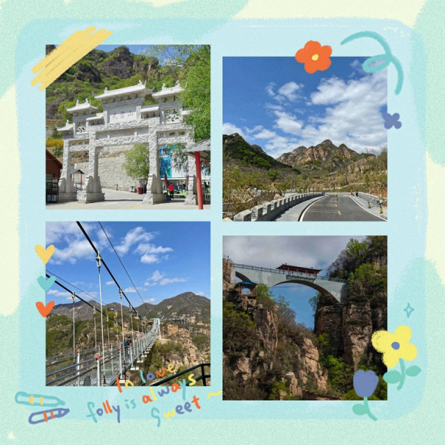 午餐品尝了富有特色的农家菜之后我们踏上了去天云山的路程。天云山旅游风景区被联合国教科文组织生态考察组誉为“北方的张家界”, 主峰海拔1149米,举目远眺可一览群峰,雄壮的古长城蜿蜒于东西侧的群山峻岭之上,自然景观雄伟而恬美,悬崖陡壁与山林幽谷,怪石危峰奇异嶙峋,林木浓荫蔽日。这里拥有国内最长的一条玻璃栈道、落差300米的玻璃桥和与之相连的玻璃观景台。