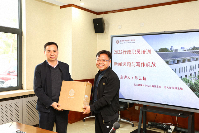 “不要穿靴戴帽,要学会精选事实,让事实说话,真实是新闻的生命。”2022年4月7日,在国际关系学院举办的第二期行政职员“赋能计划”培训讲座上,北大融媒体中心总编室主任、北大新闻网主编陈云超如是说。第二期行政职员“赋能计划”培训讲座围绕“新闻选题与写作规范”主题展开,国际关系学院党委副书记祝诣博,院长助理闫岩、张昕扬和教学、科研、外事、学工等业务口相关人员参加活动。培训讲座由张昕扬主持。