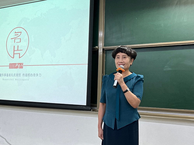 讲座下半场,苑董事长分享了自身的国际交流经验,并指出中国人目前在审美方面尚有进步和改善空间。苑董事长通过生动的案例分析,具体指导了同学们如何读懂外事着装礼仪规范,量身选择恰当的着装,从而打造视觉美感,传递核心竞争力。她呼吁,同学们应该更加重视如何在合适的场合穿合适的衣服,并将对美的追求融入生活,从而更好地向世界传递中国名片,展现中国形象和风采。