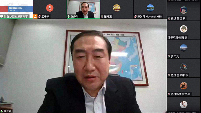 2022年12月7日晚,中国国际贸易促进委员会党组成员、副会长,商务部国际经贸关系司前司长、区域全面经济伙伴关系协定(RCEP)前中方首席谈判代表张少刚为北大师生带来了主题为“国际贸易谈判概论”的精彩讲座。国际关系学院副院长兼国际组织与国际公共政策系主任张海滨教授致欢迎辞。学院助理教授徐沁仪出席讲座并参与讨论。陈沐阳助理教授主持讲座。来自国际关系学院、法学院、光华管理学院、历史学系、软件与微电子学院、信息科学技术学院、社会学系、外国语学院、新媒体研究院、新闻与传播学院、燕京学堂、艺术学院、医学部等百余名本硕博学生参加了讲座。