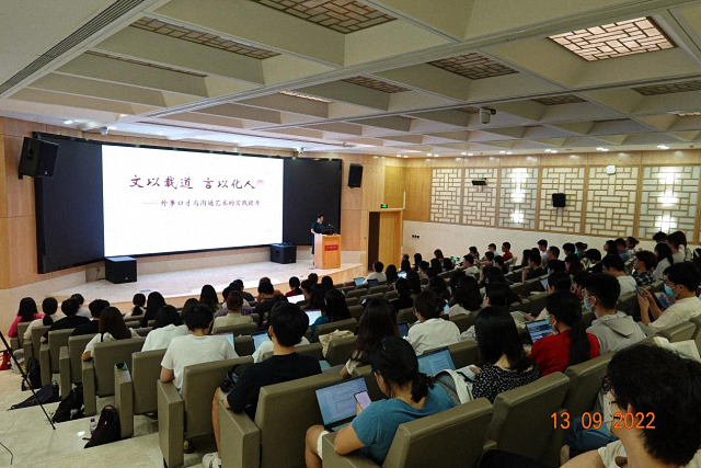 9月13日,中华人民共和国文化部原副部长、全国妇联原副主席、第十二届全国政协委员孟晓驷女士做首场讲座,正式拉开2022年系列讲座的序幕。孟主席以《文以载道,言以化人——外事口才与沟通艺术的实践提升》为题与同学们分享了她在外事口才实践中的丰富经验和深刻感悟。孟主席从自己从事文化外交和对外交流20余年、访问世界80多个国家的丰富实践经历中选取了大量生动鲜活的案例,与同学们探讨了外事工作中口才的重要性。她强调,口才是一个人的心理素质、文化素质、甚至是综合素质的体现;在外事交流中,应当事先了解对象国的文化传统;在实际的交谈过程中,要注重情理交融、精准表达,同时要学会倾听。通过分享她在美国、法国、俄罗斯、阿联酋、摩尔多瓦、埃塞俄比亚、东南亚等国家和地区参加高层外事活动的亲身经历,孟主席形象地阐释了真诚赞美在交流中拉近情感距离的重要作用。孟主席也结合她对新冠疫情期间公共交流的观察,指出智慧幽默能够展现风度、营造友好交往氛围,为外事交往添彩。另外,她还就外事交往中如何保持服饰和声音的得体为同学们提供了指导。