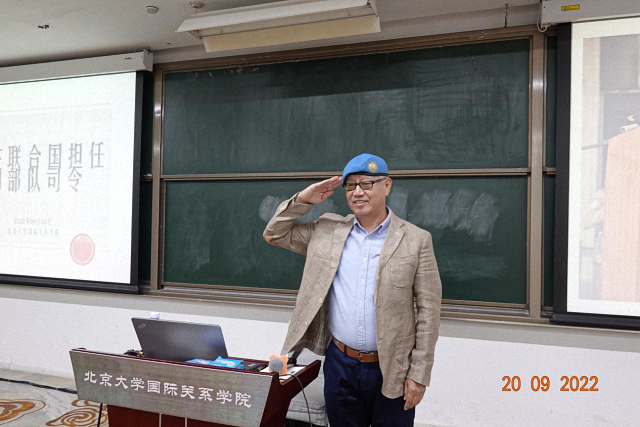 9月20日,联合国驻塞浦路斯维和部队原司令、中国国际战略学会高级顾问刘超将军为北大师生带来了题为《我在联合国担任维和部队司令》的讲座。讲座伊始,刘超将军以联合国维和部队的创建历史为引子,讲述了蓝色贝雷帽的历史渊源和意义,并展示如何正确佩戴蓝色贝雷帽。讲座上半场,刘将军展示了维和部队军事训练、日常执勤、执行军事任务、军地交流等场景。之后,他还介绍了自己选择竞选维和部队司令的历程和经验,并鼓励同学们更多地了解国际组织,参与到国际组织中去。讲座下半场,刘超将军向同学们介绍了担任维和部队司令员所需的军事素养和能力要求,这体现在要深入了解驻在国的政治、经济和文化,特别是在存在政治争议、族群冲突的高度敏感地区,要体现和执行联合国的立场,避免在做出重要决策时受到突发因素的干扰。他还强调,由于联合国维和部队组成人员的多样性,在指挥维和部队过程中要加强军队内部交流、加深相互理解、增强凝聚力。此外,刘将军认为中国正处于从全球治理的参与者向引领者转变的过程中,如何贡献中国方案、中国智慧和中国力量需要更多讨论与研究。
