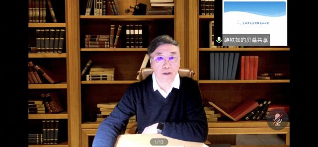 11月22日晚上,世界卫生组织西太平洋区前副主任、中国全球健康学会首届主任委员、中国科协联合国生命科学和人类健康咨商委员会主席韩铁如教授带来了题为《世界卫生组织与全球卫生治理》的讲座。韩教授以当下世卫组织与全球卫生治理面临的若干问题,如“世界卫生组织是否已不再是唯一的全球健康的协调权威机构?”“世界卫生组织理事机构如何改善全球卫生治理决策,提高执行效率和对卫生危机的监测评估?”等开启了本次讲座,引发同学们思考。讲座分为三个部分:世界卫生组织的结构及运作、中国与世卫组织以及全球卫生治理未来面临的挑战。韩教授首先介绍了世界卫生组织内部组成架构及机构运行特点,又进一步讨论了其决策机制困局与改革方向。之后,韩教授详细阐述了中国对世界卫生组织做出的贡献,尤其是中国参与世界卫生组织创建和早期工作的过程,以及目前中国在世卫组织中国代表性不足的问题及其对策。最后,韩教授结合新冠疫情案例,系统讨论了当前全球卫生治理面临的主要挑战以及未来可能出现的重大变革。