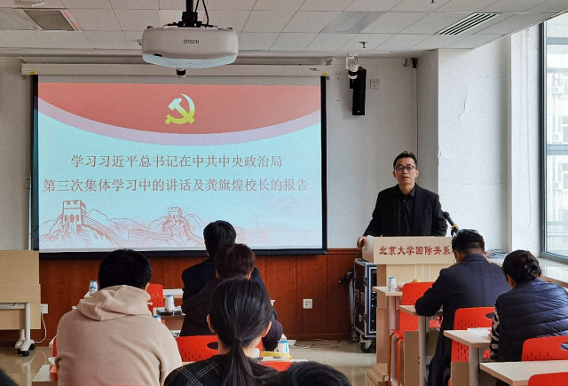 科技自立自强是国家强盛之基、安全之要。为认真学习宣传贯彻党的二十大精神,不断推进中国式现代化建设,切实加强基础研究,夯实科技自立自强根基,2023年2月27日,北京大学国际关系学院召开党委扩大会,专题学习习近平总书记在中共中央政治局第三次集体学习时的重要讲话及龚旗煌校长的报告,汲取思想伟力、厚植科研沃土、激发创新活力。国际关系学院党委书记初晓波,党委副书记祝诣博、项佐涛,副院长张海滨、董昭华等党政领导班子成员,与党委委员、教工党支部书记、学生党团支部书记等20余人参加专题学习会,会议由初晓波主持。
