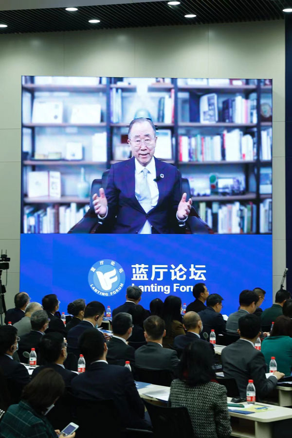 潘基文在致辞中表示,当今世界正经历百年未有之大变局,全球危机加剧,不安全与不确定性凸显,中美竞争、俄乌冲突、新冠疫情、气候变化等全球性挑战极大冲击了现有的全球安全、经济与社会体系。在此背景下,各国应奉行多边主义,携手应对各类全球性挑战。然而,当前各国之间的分歧不断加深,团结似乎仍遥遥无期。他呼吁安理会各常任理事国积极发挥引领作用,共同维护和平与安全。唯有有效的、及时的合作能够使以联合国为核心的国际体系更好地发挥作用,并团结带领世界各国协作应对不断涌现的传统和非传统安全挑战。