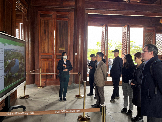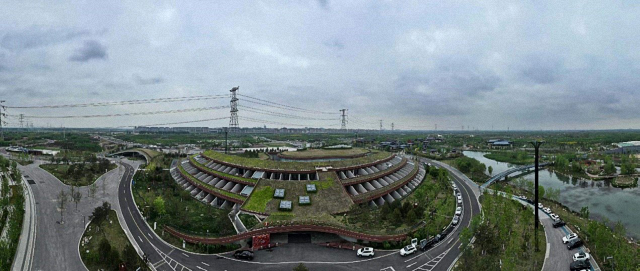 老师们首先来到悦容公园参观。悦容公园坐落于雄安新区容东片区与容城县之间,是雄安新区首个城市综合公园,也是雄安新区中轴线上的标志性公共空间。公园采用山水造园手法,充分展现了中国园林文化意蕴。这一绿色空间正使雄安市民“三百米进公园,一公里进林带,三公里进森林”的目标逐渐成为现实。