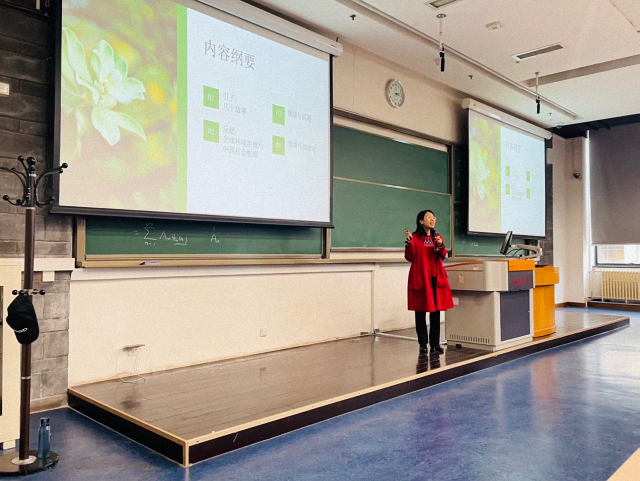 讲座伊始,王豁女士用5·22国际生物多样性日与《昆明-蒙特利尔全球生物多样性框架》、北京大学校园保护小区入选全球生物多样性经典案例、《生物多样性公约》及合成生物学临时技术专家组构成、遗传资源数字系列全球科学家网络与世界自然保护联盟及其参与全球环境治理实践等丰富生动的事例激起了同学们对于基于国际公约的全球治理机制、以及国际组织的兴趣,让同学们对国际环境非政府组织的工作实践及其在全球环境治理中角色与作用有了清楚的了解。随后,王豁女士对“生态文明”、社会组织“走出去”等关键概念进行学理分析,着重讨论了关于社会组织“走出去”在翻译表达、主体责任、国家角色、人才缺乏、经费保障和困难挑战等诸多方面,立足于中国实际反思中国社会组织如何“走出去”参与全球环境治理。最后,王豁女士对在场的同学提出了殷切的期盼,希望朝气蓬勃的青年能够走向全球环境治理一线场合,以志愿服务、实习或任职等方式加入到国际组织中,助力中国深度参与全球环境治理。