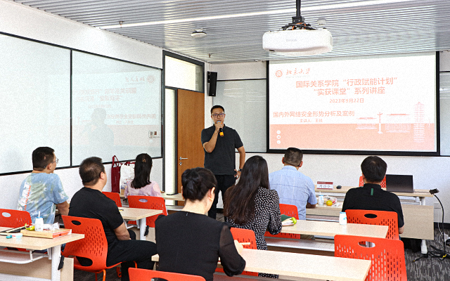 为深入学习宣传习近平总书记关于网络安全和信息化工作的重要指示,贯彻落实全国网络安全和信息化工作会议精神,全面筑牢网络安全防线,2023年9月22日,北京大学国际关系学院举办新学期“实获课堂”系列首场讲座暨保密工作及网络安全培训,邀请网络安全专家王锐,围绕“国内外网络安全形势分析及案例”展开讲座授课。北京大学高级工程师、计算中心网络安全室主任周昌令,国际关系学院党委副书记张昕扬,行政办公室主任霍艳丽,学院教师、各业务部门行政人员以及学生骨干共30余人参加活动,培训讲座由学院党委人事办公室主任田田叶主持。