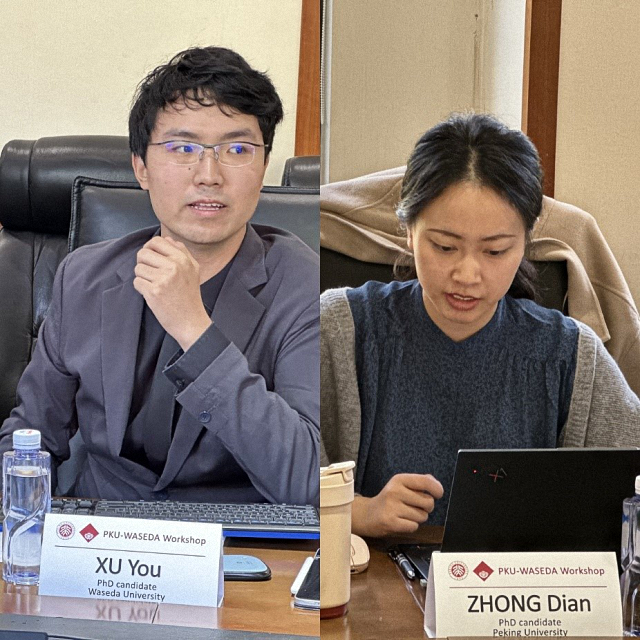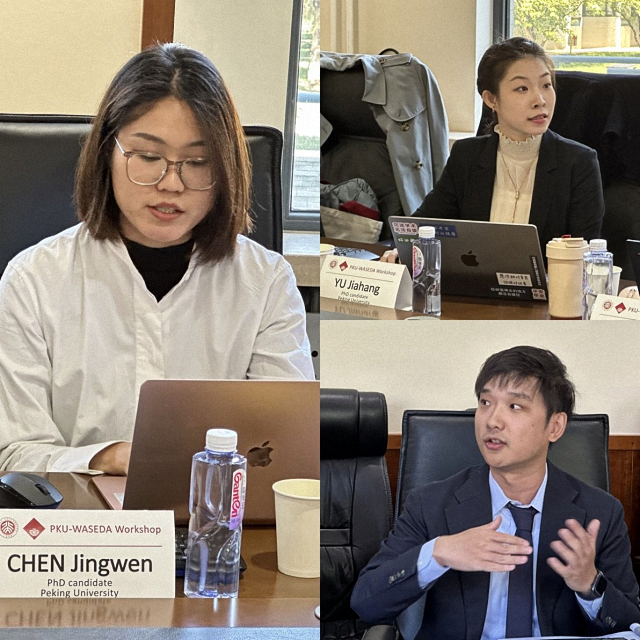 随后,北大和早大的5位博士研究生分别进行了主题分享。北京大学国际关系学院博士生钟点以委内瑞拉和巴西对自由主义规范的不同争论为例,探讨了国家对国际规范采取不同争论策略的原因。早稻田大学博士生周放关注国际自由主义秩序在危机中的发展变化,通过比较分析20世纪80年代的美日贸易摩擦和2018年开始的中美贸易战,探讨了两次危机对自由国际秩序的不同影响。北京大学国际关系学院博士生于佳航通过对美欧在后危机时代国际货币金融系统改革争端的政治经济学分析,解释了双方在共同的国际经济危机背景下做出截然不同选择的原因。早稻田大学博士生许由分析了欧洲借助经济相互依赖的政策工具来将俄罗斯纳入后冷战时期自由主义国际秩序的尝试。北京大学国际关系学院博士生陈静雯则比较了中印参与区域经济合作的规则接受程度和经济方略操控能力,解释了新兴市场经济体在地区经济合作当中采取不 同选择的原因。