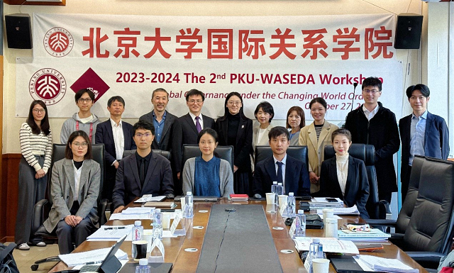 2023年10月27日,第二期北大-早大合作研究交流会在北京大学国际关系学院成功举办。本期交流会的主题聚焦“世界秩序变化下的全球治理”,两校学者和学生围绕自由主义国际秩序、全球化再平衡等议题进行了深入的研讨交流。北京大学国际关系学院副院长董昭华、早稻田大学国际交流研究科副教授舒旻、早稻田大学国际部副部长本山哲人、早稻田大学国际部主任尾内和美与国际部国际项目主管杨振以及两校的十余名学生参加了本期交流会。