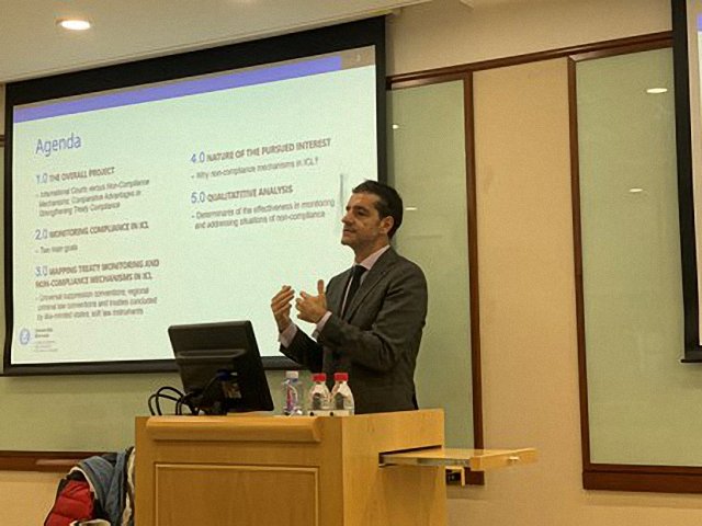 在14日下午举行的《国际刑法的履约与监督》讲座上,Leonardo Borlini详细阐释了国际刑法领域履约监督的现状和违约机制的特点及其应用场景。他首先界定了国际刑法履约与监督的“最优解”,即条约中的违约机制与国际法院的正式争端解决程序并存。随后,他对该领域不同机构的监督实施情况做了介绍,包括反洗钱金融行动特别工作组(FATF)、OECD腐败问题工作组、国际麻醉品管制局等。他指出,违约惩罚机制之所以能够在督促履约中发挥独特作用,原因在于遵约行为是法律、政治、社会、道德规范和利弊评估以及公民社会国家相互作用的产物。他进一步具体分析了影响机制有效性的因素,包括将不良表现“公之于众”、体系结构的设置(自我报告、同行审议、分阶段混合监督)、组织内和组织间合作、制裁和“软制裁”并用等。Leonardo Borlini还就中国在国际刑法的履约中的位置和作用等问题回答了听众提问。