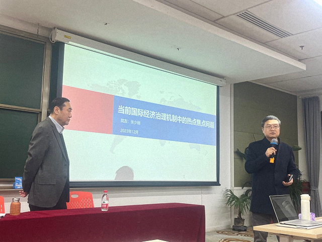张少刚的讲座主要围绕四个主题展开,分别是:国际经济治理领域主要机制概述、当前全球经济治理机制中的热点焦点问题、中国在国际经济治理体系中的基本立场、以及中国参与全球经济治理体系需要掌握的能力。