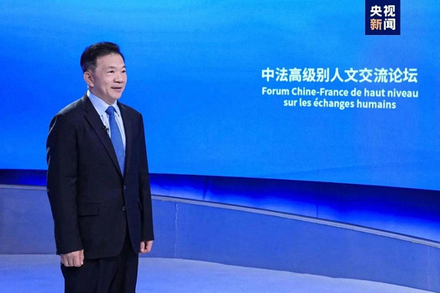 在中国国家主席习近平即将对法国进行国事访问之际,当地时间4月30日,由中国公共外交协会、中央广播电视总台、中国驻法国大使馆联合主办的中法高级别人文交流论坛在巴黎举行。中宣部副部长、中央广播电视总台台长慎海雄作视频致辞,法国国民议会议员布鲁诺·福克斯、中国驻法国大使卢沙野、巴黎法中友好协会主席布吕诺、中国公共外交协会会长吴海龙等出席活动并致辞。中法两国政府官员、友好协会负责人、研究机构代表、媒体人士等围绕推动两国关系发展、增进人文交流、促进媒体合作等热点话题展开对话。