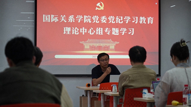 为深入学习《中国共产党纪律处分条例》,贯彻落实党中央及北京大学党委关于认真开展党纪学习教育的工作部署,5月14日中午,北京大学国际关系学院党委召开理论学习中心组(扩大)专题学习会,邀请中共中央党校(国家行政学院)科学社会主义教研部党总支专职副书记冯书泉教授围绕2023年最新修订的《中国共产党纪律处分条例》进行授课。党委书记康涛,院长唐士其,党委副书记项佐涛、张昕扬,副院长张海滨、归泳涛等党政领导班子成员出席,党委委员、专职组织员、教工党支部书记、学生党支部书记等20余人参加学习。会议由康涛主持。