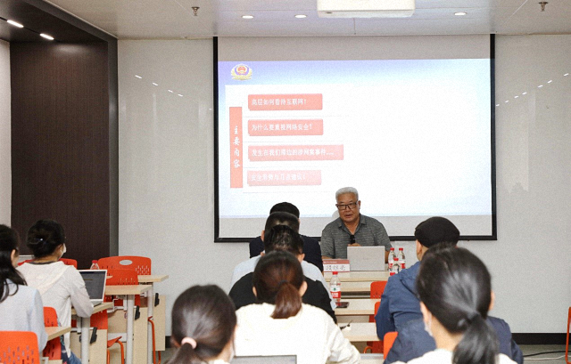 段继亮以“互联网背景下网络安全形势分析与案例通报”为题,围绕高层如何看待互联网、网络安全的重要性、发生在我们周边的涉网案事件、安全形势与建议等四个方面展开授课。他全面梳理了党和国家围绕网络安全开展的各项工作,通过系统深入的理论阐释和生动详实的实践案例,形象说明了我国现阶段面临的严峻的网络安全形势,并对高校如何做好网络安全工作提出指导建议。