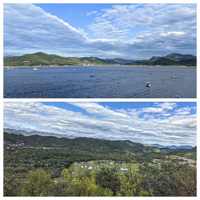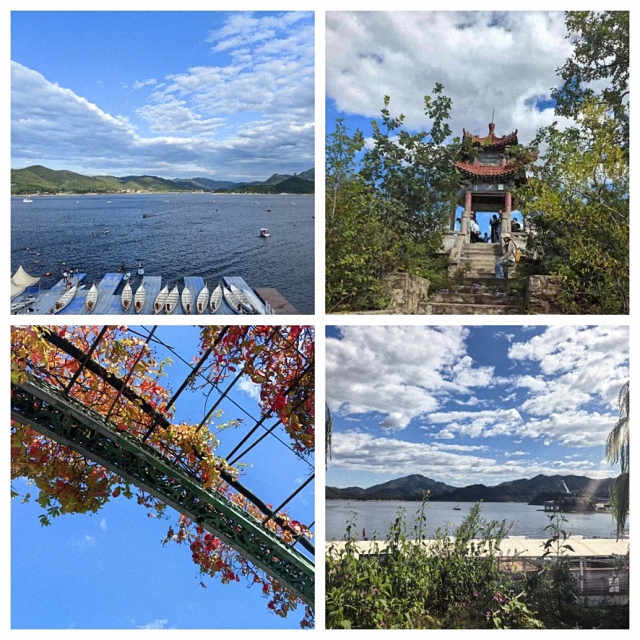 随后,教师们抵达秋游第二站平谷金海湖景区。金海湖三面环山、峰峦叠翠、风景秀丽,有千岛湖的湖观山色,免耳岭的怪石山,还有湖光塔、金花公主墓、 望海亭、锯齿崖等自然景观、人文景观数十处。每一处风景都是历史的低语、自然的赞歌。金海湖水域宽阔,碧波万顷,置身其中仿佛来到了陶渊明笔下的世外桃源,“忽逢桃花林,夹岸数百步,中无杂树,芳草鲜美,落英缤纷……土地平旷,屋舍俨然,有良田、美池、桑竹之属。” 此景此情,恰如诗中所绘,令人心旷神怡,忘却尘嚣。