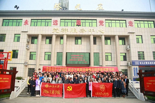 为深入学习习近平新时代中国特色社会主义思想,增强支部互联共建与跨领域交流,2024年10月26日,北京大学国际关系学院与北京大学人民医院、北京大学人民医院石家庄医院(石家庄市人民医院)在河北省石家庄市正定县开展联合下基层送健康互联共建党建活动。北京大学国际关系学院副院长、党委委员祝诣博,北京大学人民医院石家庄医院、石家庄市人民医院党委书记曹琴英,北京大学人民医院党委委员、北京大学人民医院石家庄医院副院长王晶桐,北京大学人民医院石家庄医院、石家庄市人民医院副院长米杰参加活动。学院国际政治专业党支部王联教授、刘海方副教授、许亮长聘副教授,行政党支部、国际政治专业研究生纵向党支部师生20余人一同参加。
