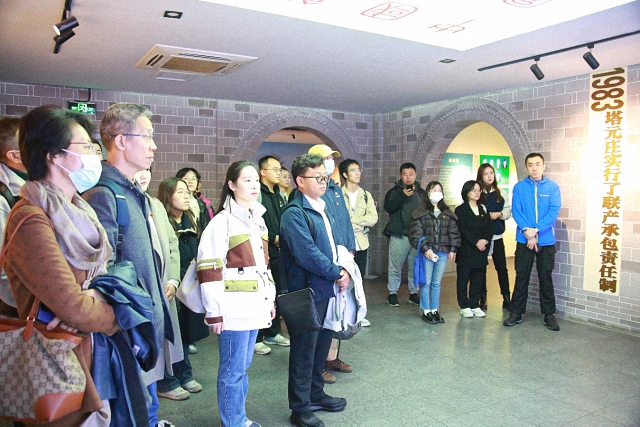 学院师生一行首先抵达正定县塔元庄村委会。进入村史馆,师生们通过照片展览、专业讲解等方式,了解塔元庄村是如何从滹沱河畔一个落后的村庄发展成为产业兴旺、生态宜居、乡风文明、治理有效、生活富裕的小康村。这一系列显著成果,是在习近平总书记的指引下,基层党组织充分发挥战斗堡垒作用,村委领导班子与广大党员共同努力、不懈奋斗,以及全村村民团结一心、鼎力支持下取得的。通过了解“全国文明村”塔元庄的发展史,师生们深切感受到了习近平总书记在正定工作期间留下的宝贵思想财富、精神财富和实践成果,更加坚定了为国家建设贡献力量的决心。