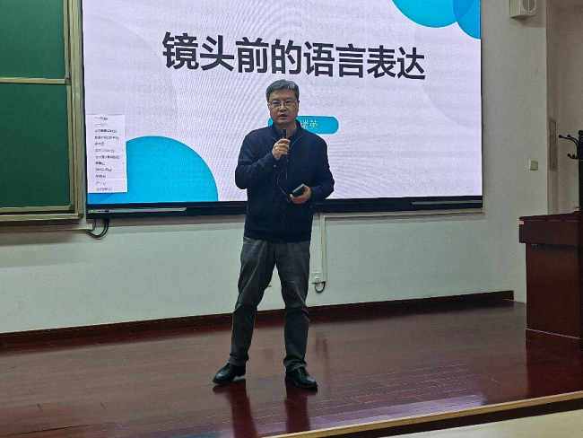 李瑞英老师曾担任中央电视台《新闻联播》栏目主播、播音部主任。在讲座过程中,她结合几十年的工作经验,分享了新闻播报的台前幕后。她强调,新闻播报者首先应当拥有积极、正确的态度,练就过硬的脚力、眼力、脑力、笔力。她指出,正确的态度源自于对于生活的细致观察、对于社会问题的关心、以及对于自己岗位的认可。她鼓励同学们,在当今分工细化的背景下,不论身在什么岗位,都可以做出自己的独特贡献。在新媒体时代,应抢占舆论制高点,关注细节、提升品质,持续推进好感传播,提高处理突发事件的应对能力。最后,她还从政治素质、文化素质、专业素质、心理素质和团队合作的精神等多个维度阐述了职业规划中应当注意的问题和应当培养的素质。