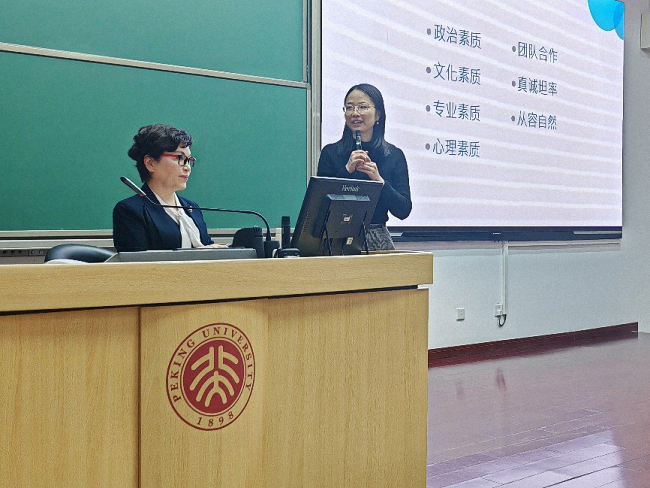 2024年12月3日晚,北京大学国际关系学院2024-2025学年《国际组织与全球治理前沿名家讲座》于理科教学楼208举行。中央广播电视总台播音指导、中国广播电视社会组织联合会播音主持委员会会长李瑞英老师为同学们带来题为《镜头前的语言表达》的精彩讲座。国际关系学院副院长兼国际组织与国际公共政策系系主任张海滨教授致欢迎辞,陈沐阳助理教授主持讲座,来自国际关系学院、新闻与传播学院、政府管理学院、光华管理学院、元培学院、中国语言文学系、外国语学院、考古文博学院、历史学系、教育学院、前沿交叉学科研究院、体育教研部、数学科学学院、化学与分子工程学院、生命科学学院、地球与空间科学学院、信息科学技术学院、城市与环境学院、心理与认知科学学院、软件与微电子学院等十多个院系的一百五十余名本硕博学生参加了此次讲座。