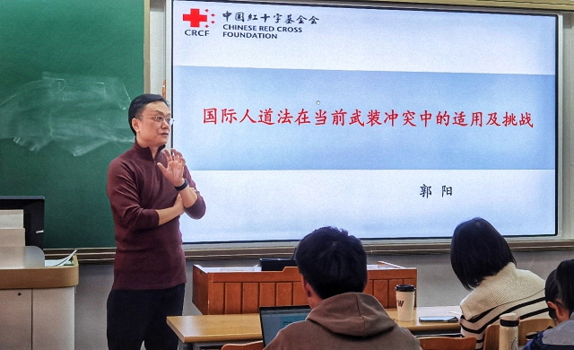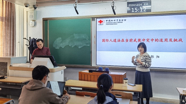 2024年12月24日下午,中国红十字基金会副秘书长郭阳博士走进《国际法与国际关系》本科生通识核心课堂,为同学们带来《国际人道法在当代武装冲突中的适用及挑战》专题讲座。郭阳博士曾任外交部条约法律司官员、红十字国际委员会东亚地区代表处法律顾问、高级政治顾问。讲座由《国际法与国际关系》课程任课教师、国际关系学院助理教授赖华夏主持。
