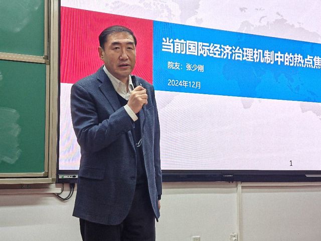 12月24日,中国国际贸易促进委员会副会长、党组成员,商务部国际经贸关系司原司长张少刚为同学们带来题为《当前国际经济治理机制中的热点焦点问题》的精彩讲座。张会长首先介绍了国际经济治理的基本框架。他指出,当前全球经济治理的相关国际机制主要分为两种,一是以联合国、世界银行、国际货币基金组织和世界贸易组织为代表的实体性国际机制,他们代表性强、涉及议题广泛,但效率相对欠缺。二是以二十国集团、金砖国家论坛、亚太经济合作组织为代表的国际论坛机制,他们的与会层级高、作用重要,但时常难以平衡各方利益、达成政治共识。接着,张会长提出并讨论了当前全球经济治理中的十个热点问题,包括全球南方问题、碳关税问题、劳工问题等。他指出,近年来数据流动与数字经济、国际经济治理机制改革等问题成为焦点,是全球治理的新挑战。张会长认为,当前发达国家与发展中国家及新兴经济体在全球经济治理中的利益博弈愈发明显。随后,张会长结合党的二十大报告,简要概括了中国在国际经济治理体系中的基本立场。在讲座的最后,张会长结合习近平总书记关于中国要着力增强规则制定能力、议程设置能力、舆论宣传能力、统筹协调能力的相关论述,讨论了中国如何参与全球治理。与此同时,张会长结合自身工作经验,鼓励同学们好好学习,打下基础,将来参与到全球经济治理事业中。