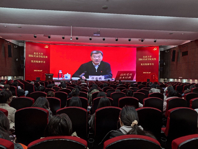 为深入学习贯彻习近平新时代中国特色社会主义思想和全国教育大会精神,着力推动教育强国建设,3月7日,国际关系学院党委书记康涛,院长唐士其,党委副书记项佐涛、张昕扬,副院长张海滨、归泳涛、祝诣博、董昭华等领导班子成员,与学院光荣在党50年60年老党员代表、离退休党员代表、海外归国青年教师党员代表以及全院师生党员共200余人在秋林报告厅参加了全校党员集体学习,共同学习教育部党组书记、部长怀进鹏所作的专题报告。