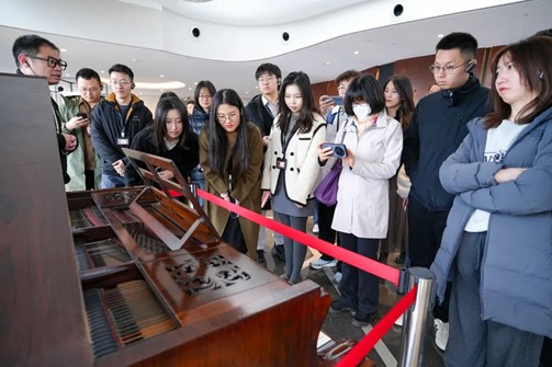 随后,师生们来到了九棵树(上海)未来艺术中心。九棵树(上海)未来艺术中心(以下简称“九棵树”)坐落于占地 7000 亩的生态林地,用地面积12.05万平方米,拥有三个室内场馆,包括 1200 座的大剧场、500 座的实验剧场以及300 座的小剧场。除此之外,“九棵树”还拥有两个室外剧场,包括可以容纳2000人的森林剧场和依水而建的水岸舞台,被业界人士盛赞为“森林剧院”。“九棵树”由上海华人梦想文化发展有限公司运营管理,于2019年10月25日正式对外运营。作为国内第一家 A 级人文生态综合剧院,“九棵树”凭借其生机盎然的外形、充满未来感的材质、俯仰皆是的智慧科技元素以及融自然与艺术于一身的森系理念,成为了南上海的文化中心与艺术地标,一座让广大观众认识美、创造美、欣赏美、热爱美的“梦幻岛”。同学们在剧场中就坐、观影,体验现代化的声像设备带来的震撼效果,还在剧场中尝试弹奏了著名波兰作曲家肖邦曾使用过的钢琴,沉浸式感受着奉贤的人文艺术气息。