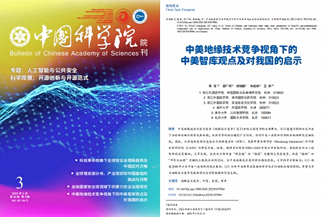 2025年3月19日,北京大学国际关系学院长聘正教授、中外人文交流研究基地执行主任王栋与合作者在《中国科学院院刊》发表论文《中美地缘技术竞争视角下的中美智库观点及对我国的启示》,当选《中国科学院院刊》当期封面论文。浙江外国语学院特聘教授、城市国际化研究院院长陈溪为本文第一作者,北京大学国际关系学院长聘正教授、中外人文交流研究基地执行主任王栋为本文通讯作者。