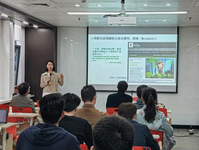 师生党员认真聆听授课,深入思考。在交流互动环节,党员们与庞珣老师展开了热烈探讨。通过本次学习,国关学院师生进一步了解了人工智能运行的底层逻辑,未来将更好地利用大语言模型,让科技赋能学习工作,有效提升工作效率,推进各方面工作高质量发展。