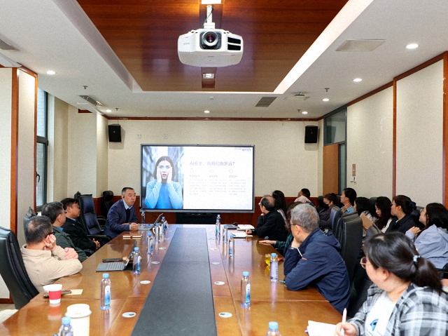 为认真贯彻习近平总书记关于网络安全工作的重要指示,赋能高校数字化转型,统筹落实北京大学“科技创新年”重要部署,2025年5月9日,国际关系学院举办人工智能与网络安全讲座,邀请北京大学高级工程师、计算中心网络安全室主任周昌令以《人工智能安全挑战》为题讲座授课,学院院长唐士其,副院长董昭华,党委副书记张昕扬,专任教师王联、庞珣、陈绍锋、陈长伟、节大磊以及各业务部门行政人员共30余人参加活动。讲座由学院副院长祝诣博主持。