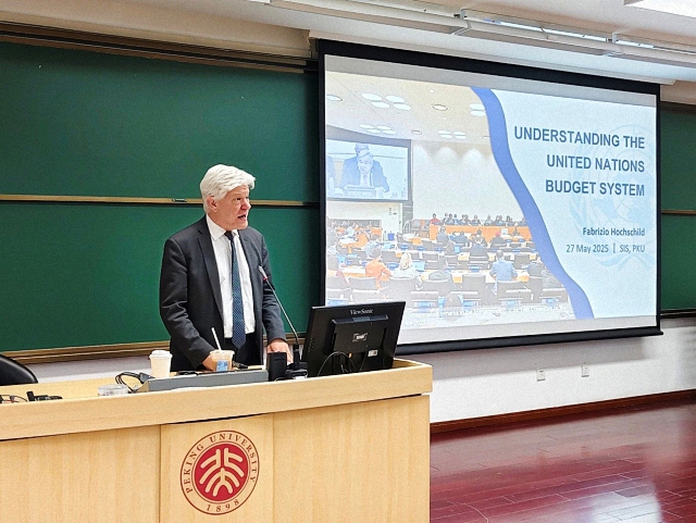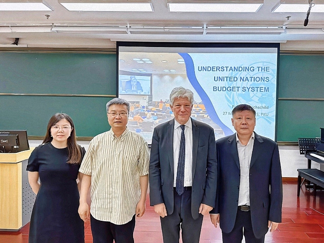 2025年5月28日下午,应北大国际组织研究中心的邀请,联合国前副秘书长、现任日内瓦安全政策中心研究员、中国教育发展战略学会国际胜任力培养专业委员会高级顾问法布里齐奥·霍克希尔德(Fabrizio Hochschild)先生在我院发表演讲,题为“理解联合国预算系统”(Understanding the United Nations Budget System)。