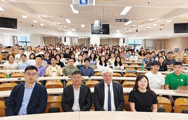 讲座内容翔实,深入浅出,视角前沿,视野开阔,在场师生深受启发,获益良多。在互动环节,中外学生积极提问,霍克希尔德先生对同学们的问题给予了高度评价与耐心细致的解答,现场气氛热烈活跃。最后,霍克希尔德先生与课堂师生合影留念,演讲活动在现场的热烈掌声中圆满结束。