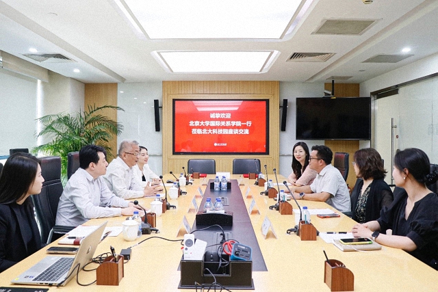 签约仪式前,双方进行了务实高效的交流座谈。史宇升介绍了科技园的发展历程、核心业务板块以及在服务高校科技成果转化、培育创新企业、构建产业生态方面取得的成果。祝诣博介绍了学院的学科优势、研究特色以及绿色国际领导力智库课题最新进展。双方表示,此次合作将积极推动理论研究与现实关切紧密结合,积极促进国关学科与科技产业融合创新发展。北大科技园将充分发挥在科技产业资源整合、地区合作、园区服务等方面的优势,为学院学生培养、科研合作、学术交流等方面提供深度协同,实现双方合作共赢。