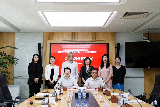 在全体与会嘉宾的共同见证下,祝诣博与陈畅分别代表北京大学国际关系学院和北大科技园,签署了战略合作备忘录。协议签署后,双方围绕人才聚集和科技创新等方面展开了深入探讨。