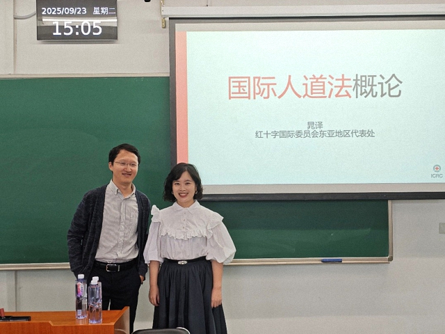 2025年9月15日和9月23日,红十字国际委员会东亚地区代表处法律顾问晁译博士先后走进《联合国与国际组织》研究生课和《国际法与国际关系》本科生通识核心课堂,为同学们带来《国际人道法概论》专题讲座。晁译博士毕业于北京大学法学院,获得法学学士和法学硕士学位,并在加拿大麦吉尔大学获得法学博士学位,于2020年加入红十字国际委员会东亚地区代表处,担任法律顾问至今。讲座由《联合国与国际组织》《国际法与国际关系》课程任课教师、国际关系学院助理教授赖华夏主持。