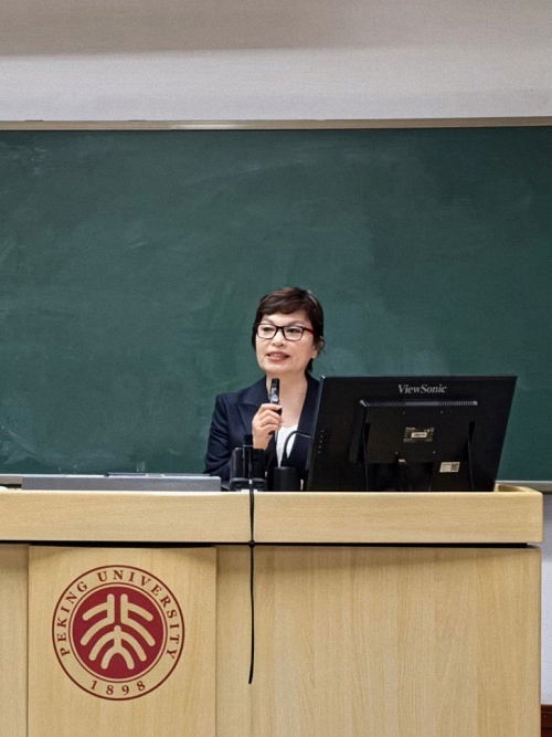 2025年10月14日晚,北京大学国际关系学院举行《国际组织与全球治理前沿名家系列讲座》第四场讲座。中央广播电视总台播音指导、中国广播电视社会组织联合会播音主持专业委员会会长李瑞英老师为同学们带来题为《有声语言的表达技巧》的精彩讲座。北京大学博雅特聘教授、国际关系学院副院长、国际组织与国际公共政策系系主任张海滨教授致欢迎辞,吴昊助理教授主持讲座。来自国际关系学院、计算机学院、政府管理学院、新闻与传播学院等十多个院系的近200名中外本硕博学生参加了此次讲座。