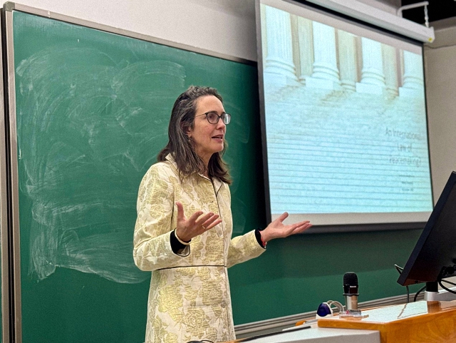 10月20日晚上,Sarah Nouwen教授以“什么是和平缔造的国际法?”为题作讲座。她首先系统梳理了西方学术界围绕“国际法与和平建设”主题形成的四种理论路径。其中,前三种属于“法律封装”项目,旨在将和平建设实践纳入法律框架,具体包括:通过描述性研究总结和平协议的共性、建立和平条款数据库作为法律工具,以及提出规范性原则以发展“战后法”。第四种则是实践者推动的“法律接种”项目,即通过制定调解准则或发起“和平条约倡议”等方式,将部分法律要素融入和平进程,以抵御外部的法律干预。她指出,这些尝试均未能成功构建起一个统一的“国际和平建设法”体系,并且各方对于“法律”概念的界定也存在显著差异:有的将其视为工具性文本,有的则基于道德原则提出规范性主张。她强调,在当前地缘政治环境下,和平建设呈现出务实化趋势,而中国发起的国际调解院等新兴实践,为《联合国宪章》第六章所规定的和平争端解决机制注入新活力。她还指出,由于权力不对称,目前发展中国家的“和平协议”往往被迫吸纳更多国际规范,使其陷入一种现实困境。