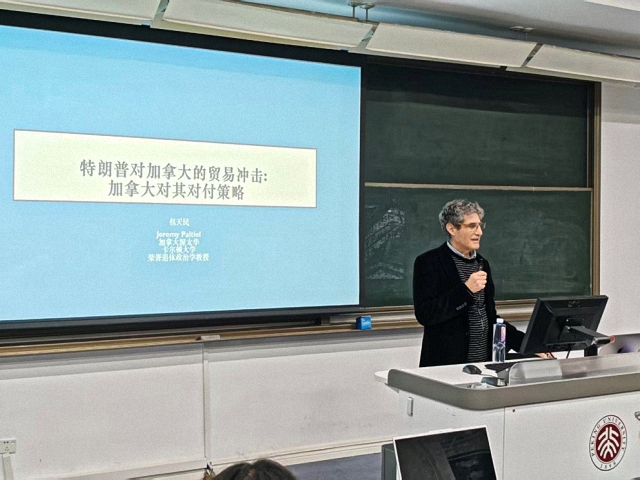 2025年11月5日,加拿大卡尔顿大学政治学教授包天民(Jeremy Paltiel)应北京大学美国研究中心邀请,以“特朗普对加拿大的贸易冲击:加拿大的应对策略”为主题作专题讲座。讲座由北京大学国际关系学院教授、美国研究中心主任王勇主持,校内外50余位师生参加了交流和讨论。