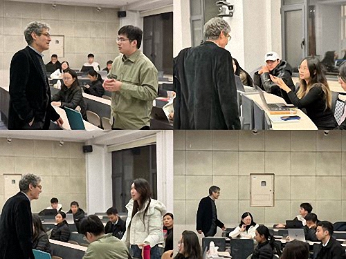 在师生交流环节,包天民教授与师生就加拿大参与地区一体化的方式、提升国际经贸影响力及平衡对美依赖等问题进行了交流讨论。
