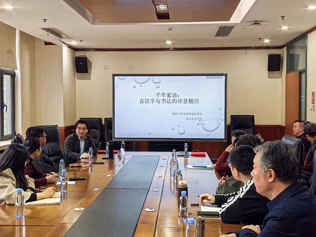 2025年11月26日,学院倾力打造的跨学科学习交流平台“实获课堂”举办本年度第三讲(总第六期),本期特邀南京艺术学院美术学院教授朱友舟以“千年絮语:古汉字与书法的诗意栖居”为主题展开讲座。学院教师、各业务部门行政人员及校内外师生共30余人参加讲座。活动由学院副院长祝诣博主持。