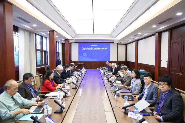 “五校会议”是由北京大学、美国普林斯顿大学、日本东京大学、韩国高丽大学和新加坡国立大学的国际关系院系在2009年共同发起的高水平年度学术会议,每年在五所高校中轮流举办,就共同关心的当前国际关系中的重大问题进行深入研讨,以促进国际问题的研究、教学以及五校之间的学术合作。