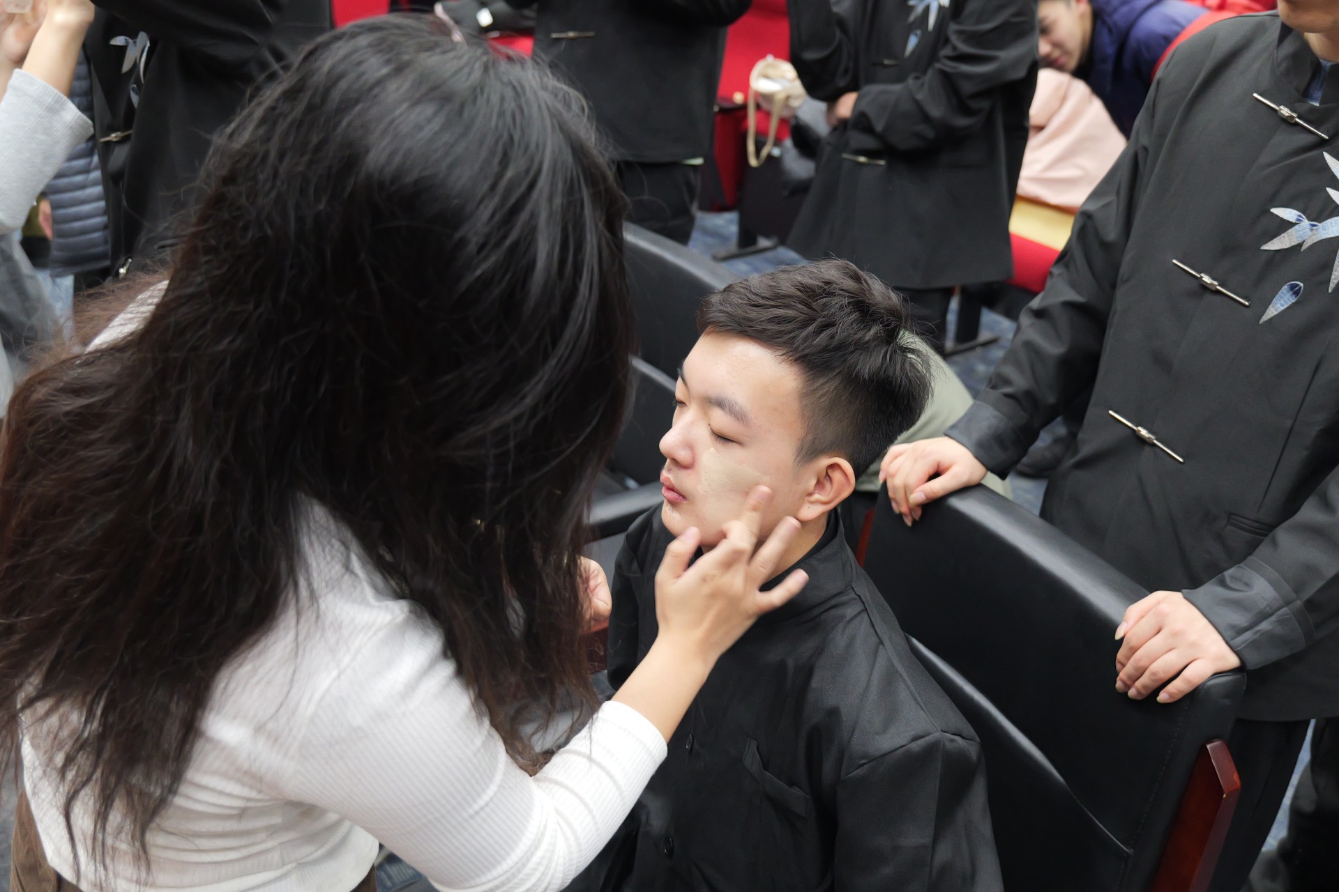 演出当天,学长学姐们来到秋林报告厅帮助同学们化妆,用热情的支持给予同学们力量。