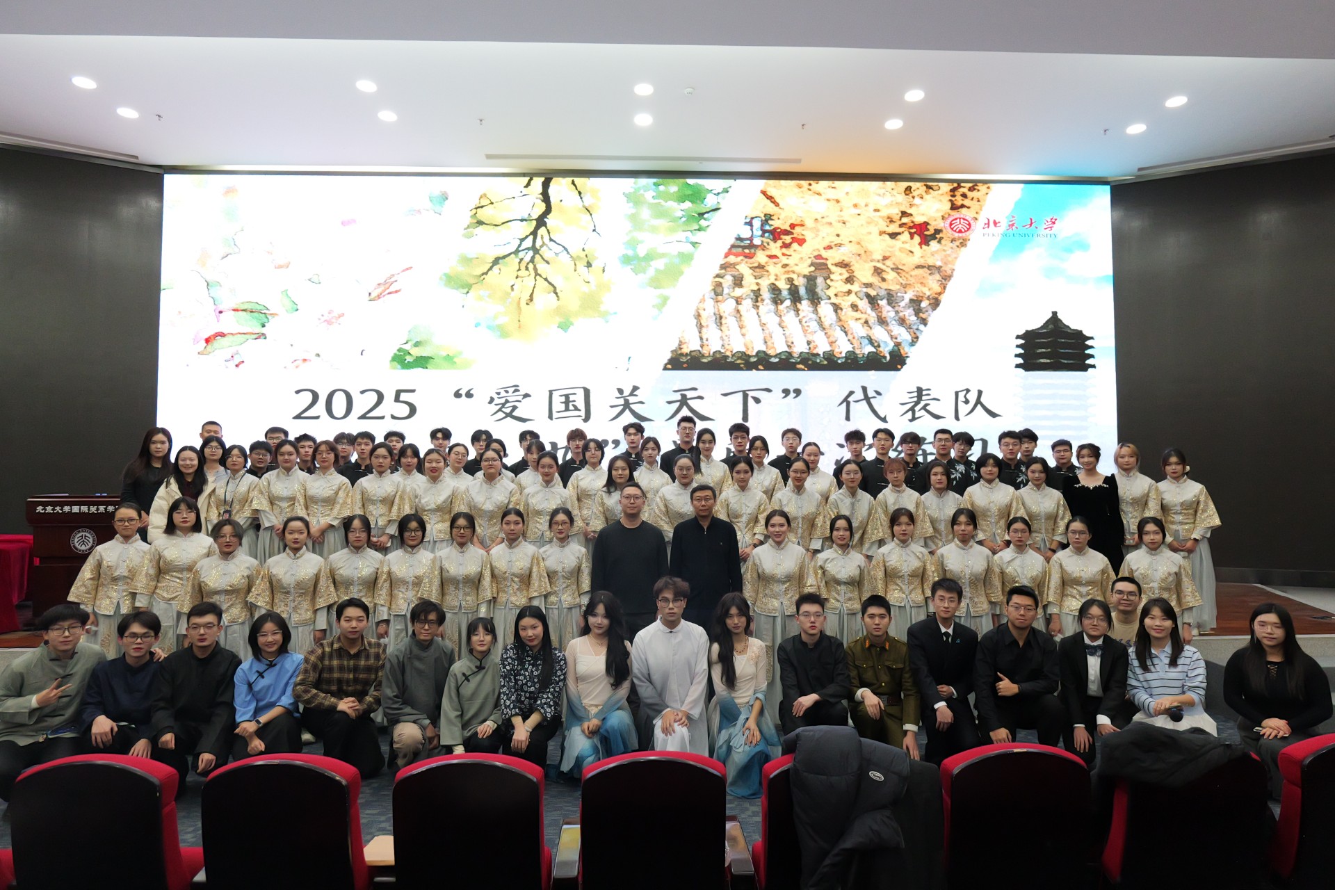 12月7日,北京大学2025年新生“爱乐传习”项目暨纪念“一二·九”运动90周年师生歌会在百周年纪念讲堂隆重举行。经过近2个多月的精心准备,爱国关天下代表队以极佳的状态唱响优美的旋律——《道别是一件难事》,以95.24的分数荣获乙组一等奖!