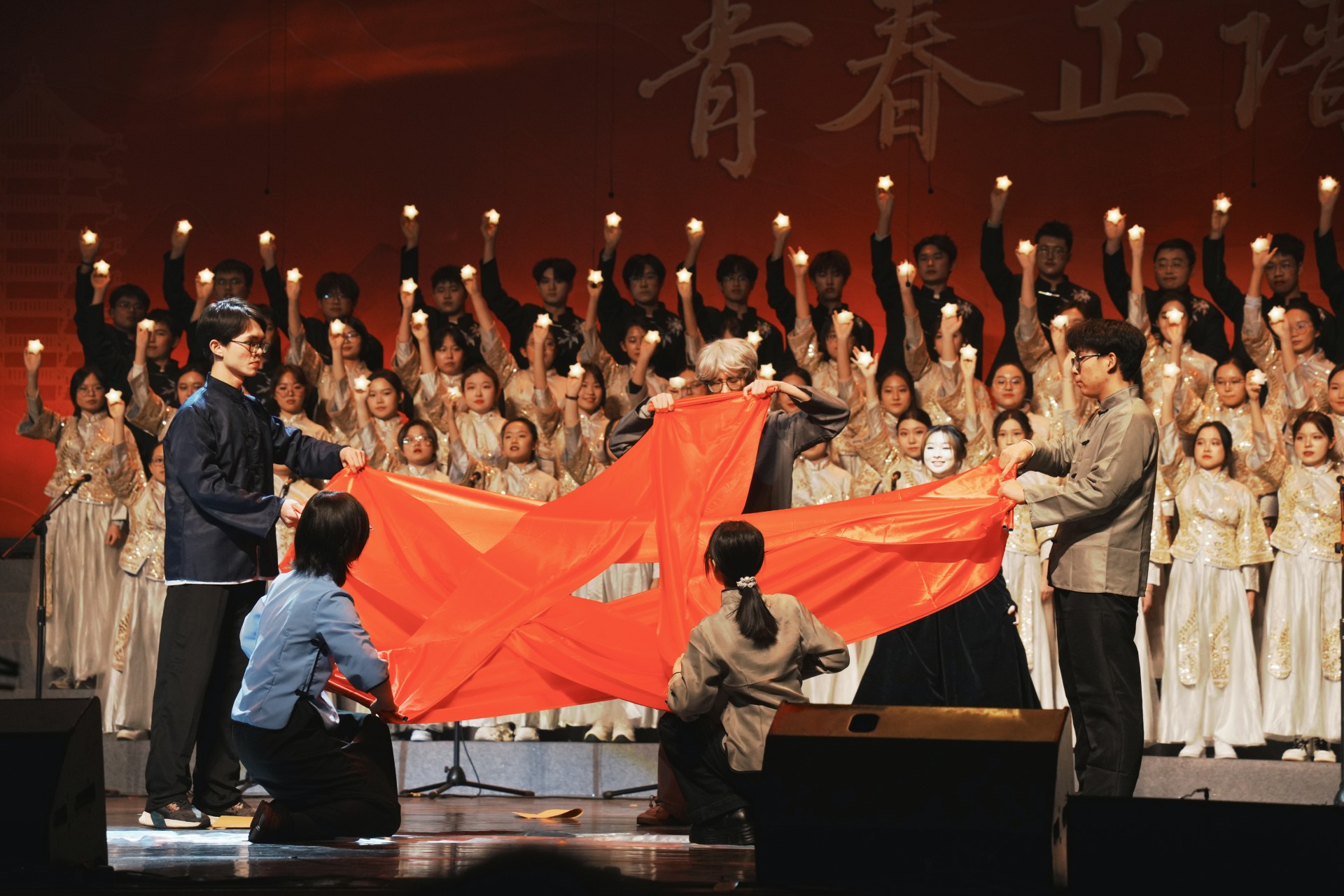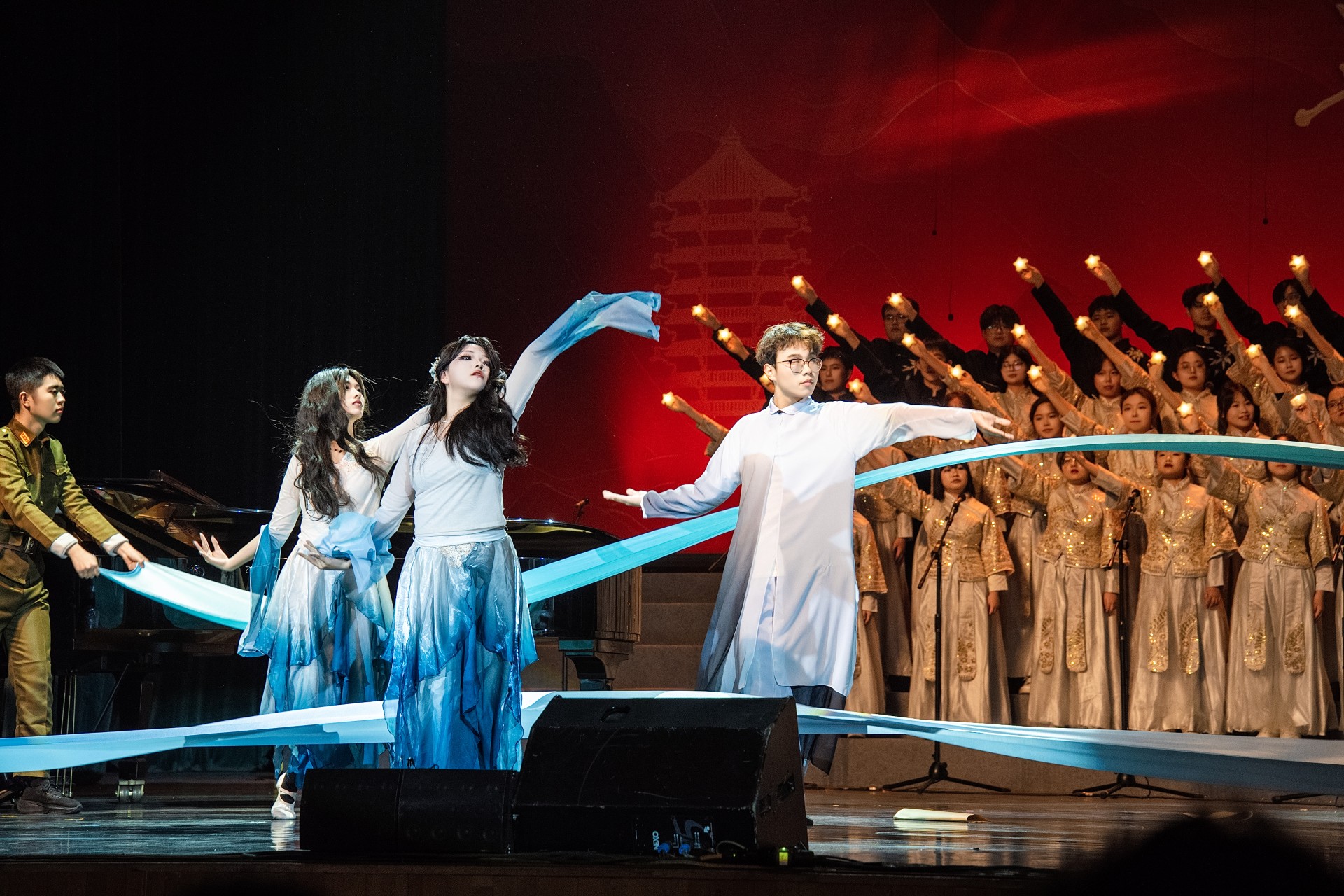 琴声加重、节奏渐强,一句“心怀那段岁月”道尽“秉承先辈遗志,再铸华夏辉煌”的吾辈力量。九十年前的青春与我们的青春在同一拍里握手, 故乡与爱人在一遍遍的咏叹中交织成洪流:情至深处,“爱人”已化作山河,“故乡”已名为“中国”。
